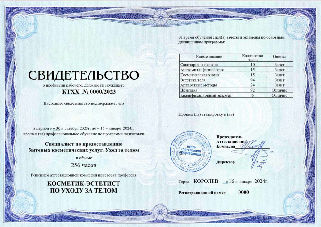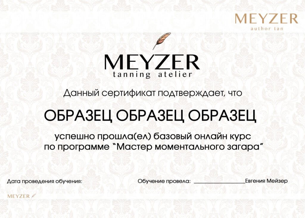 Сертификат обучающего центра Meyzer Tanning Atelier
